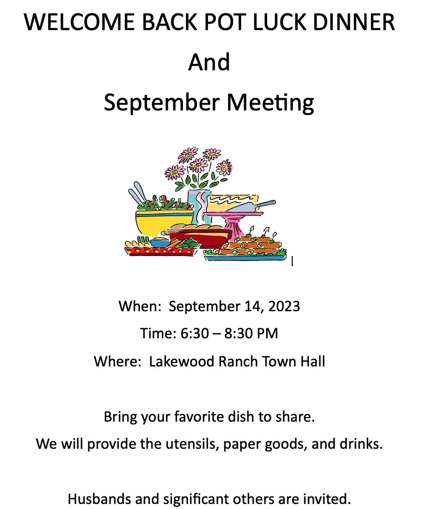 • Pot Luck Dinner 9/14/2023