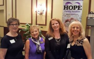 L-R, Shirley Taradash,LWRWC Pres, Patti Wrobel, LWRWC Past Pres, Laurel Lynch, Hope Family Services Director, Monika Templeman, LWRWC Vice Pres