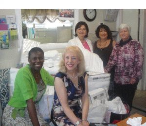 L to R- Front Row SOLVE Client Services Manager, Maria Houston and LWRWC Vice President & Publicity Co- chair, Monika Templeman. Back Row L-R – LWRWC Philanthropy Committee Member & Publicity Co- chair, Eileen Buzzard, SOLVE Business Manager, Susan Burgess, and LWRWC Philanthropy Committee Member Peggy Pontious.